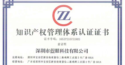 藍(lán)眼科技獲得國家知識產(chǎn)權(quán)管理體系現(xiàn)場認(rèn)證證書